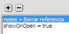 La ficha Toda la información del cuadro Design Notes muestra el nombre y la ubicación del archivo al que la nota quedará asociada. El botón con el signo + permite la introducción de nuevos elementos en la nota, los parámetros de los cuales pueden ser definidos en los cuadros Nombre y Valor. El botón con el signo –, por su parte, elimina de la nota el elemento seleccionado en el cuadro central, llamado Información.