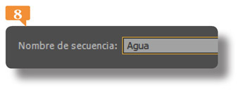 10. El nuevo ajuste se ha añadido automáticamente a la carpeta Personalizada de la ficha Ajustes prestablecidos de secuencia. En el campo Nombre de secuencia escriba la palabra Agua y pulse el botón Aceptar, también en este cuadro de diálogo.