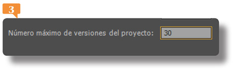 4. El siguiente campo de entrada, Número máximo de versiones del proyecto, se refiere al número copias de cada proyecto que la aplicación puede almacenar. Pulse sobre su campo numérico y escriba en este caso el número 30 para tener mayor seguridad en sus archivos.