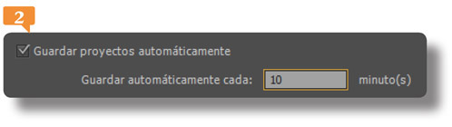 2. Se abre el cuadro Preferencias mostrando la ficha de Guardado automático.