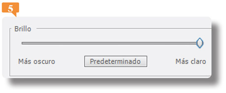 7. En efecto la interfaz se hace visiblemente más oscura. Evidentemente esta reducción del brillo afecta solo a la aplicación, a diferencia de lo que sucede cuando aumenta el brillo del monitor de su equipo. Aumente ahora el brillo arrastrando el marcador hacia el valor Más claro.