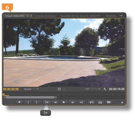 1. En este ejercicio aprenderá a interpretar y utilizar los códigos de tiempo de los monitores de Premiere Pro. Para comenzar, pulse sobre el clip 00005 y arrástrelo hasta colocarlo sobre el Monitor de origen.