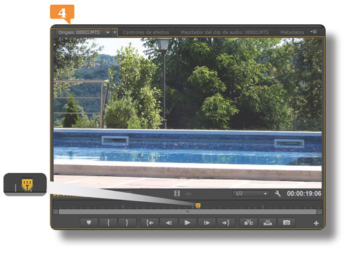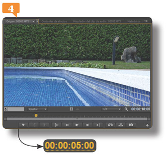 7. Observe que no le ha hecho falta introducir ningún símbolo entre los códigos de segundos y de cuadros para dirigirse al segundo 4 del clip.