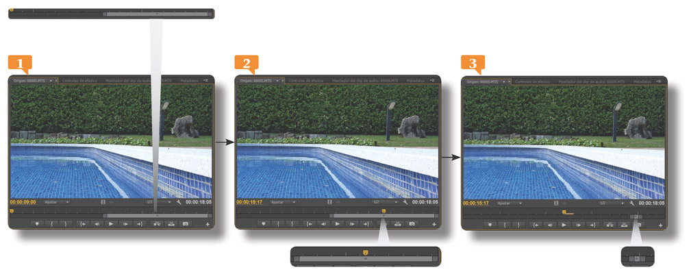 14. Sí. Se trata de otro método válido para desplazarse por el clip. Repita el proceso, ahora pulsando la tecla Mayúsculas, y compruebe cómo ahora salta de segundo el segundo.