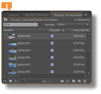 1. Pulsando la tecla Control en el panel Proyecto, abra la bandeja Sin movimiento y luego haga un doble clic en el clip 00003.
