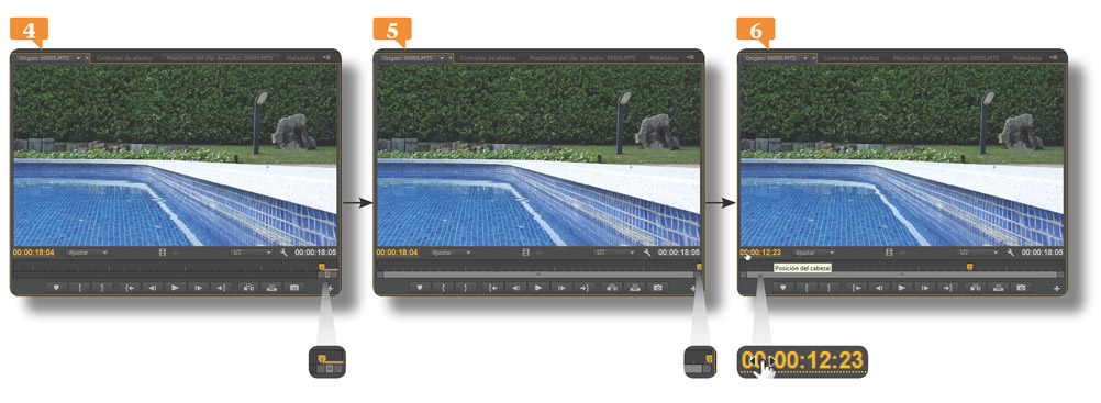 5. Así como es posible ir a un cuadro específico usando los diferentes métodos de reproducción que vimos en el ejercicio anterior, también es posible ir a un cuadro específico usando el código de tiempo. Pulse en el código de tiempo de la izquierda.