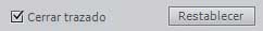 L’opció Cerrar trazado permet establir si el traçat està tancat i es troba activat per defecte. Un traçat obert dibuixaria únicament el traç, sense farcit. Finalment, el botó Restablecer recupera tots els controls originals de l’eina Óvalo simple i l’estat inicial de la forma creada.