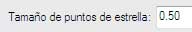 El paràmetre modificable Tamaño de puntos de estrella,al quadre Configuración de herramienta, només afecta als estels, no als polígons. Determina la seva profunditat, és a dir, a quina distància se situen els punts d’origen de les puntes respecte als quals conformen el seu extrem. Com més proper a 0 sigui el valor del quadre Grandària de punts d’estrella, més profunds seran els punts creats