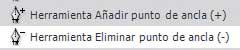 Una altra de les variants de l’eina Pluma és la que possibilita la creació de nous punts d’ancoratge en els traçats. De forma predeterminada, l’eina Pluma canvia a Añadir punto de ancla en col·locar el punter sobre un traçat seleccionat o a Eliminar punto de ancla quan es col·loca en un punt d’ancora existent. En qualsevol cas, ja sap que pot trobar aquestes eines al panell Eines.