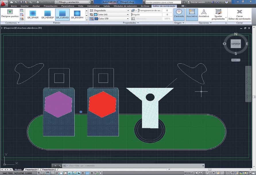 Los rellenos de degradado se suelen utilizar para mejorar los dibujos de presentaciones, ya que produce un efecto de reflejo de luz sobre el objeto.