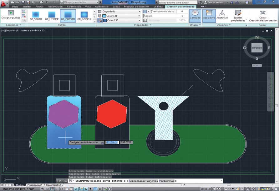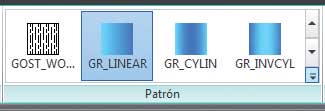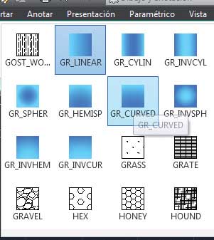 AutoCAD permite elegir entre nueve patrones de degradado diferentes que incluyen el barrido lineal, el esférico y el parabólico.