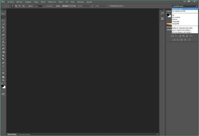 Los espacios de trabajo son la mejor forma de familiarizarse con la interfaz de Photoshop según el tipo de trabajo que se vaya a llevar a cabo con el programa.