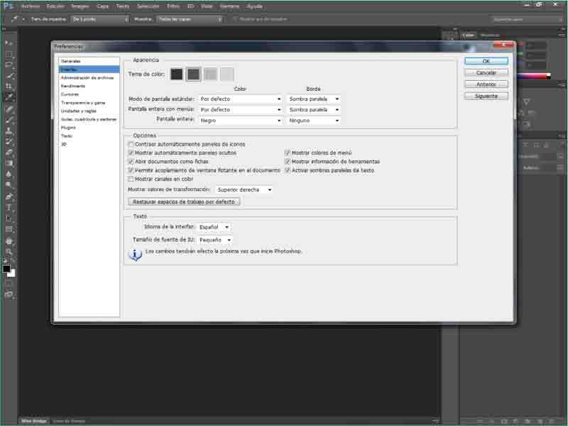 La versión CS6 de Photoshop presenta un color predeterminado de la interfaz más oscuro que en versiones anteriores.