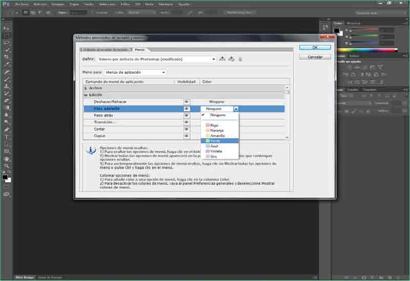 Además de utilizar los diferentes espacios de trabajo disponibles en Photoshop y de personalizarlos a gusto del usuario, también es posible personalizar la interfaz del programa mediante el cambio en la disposición de los menús y de los paneles.