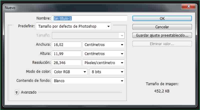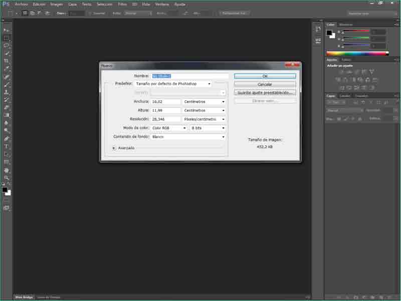 El proceso para la creación de nuevos documentos en Photoshop permite especificar, además del nombre del nuevo archivo, las dimensiones, la resolución, el color e, incluso, el color de fondo.