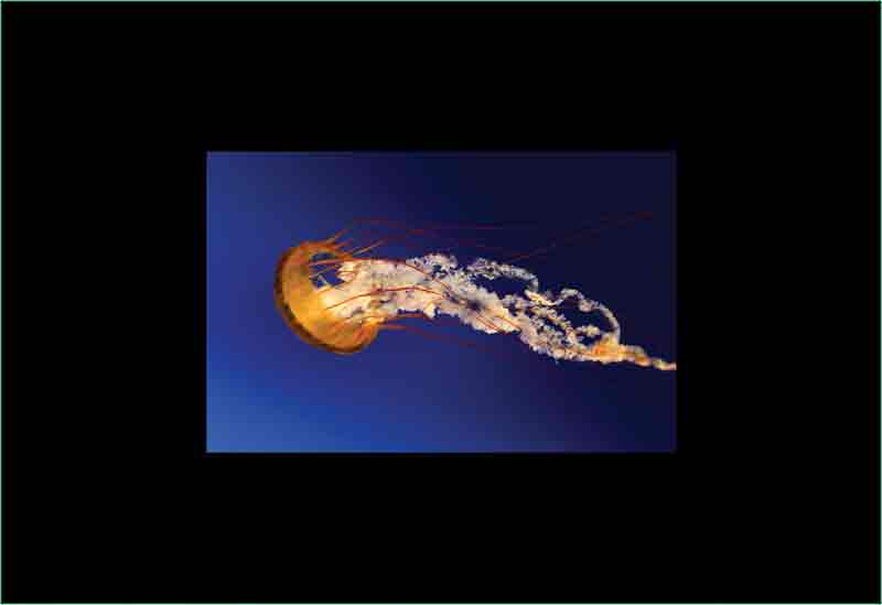 El modo visualización de pantalla entera disponible en Photoshop permite al usuario visualizar la imagen sobre un fondo negro, libre de paneles y barras de herramientas.
