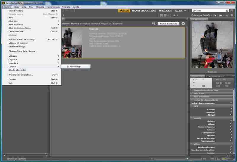 Otra forma de visualizar en Photoshop una imagen abierta en Bridge es haciendo doble clic sobre dicha imagen.