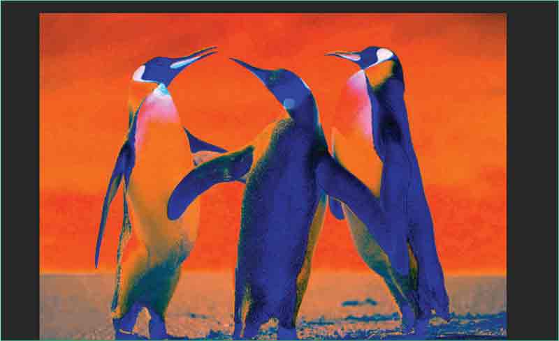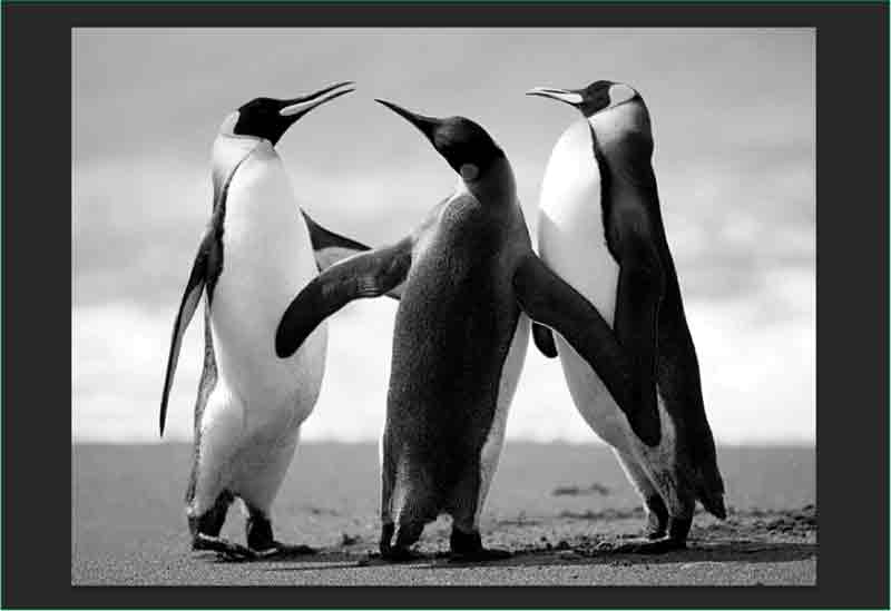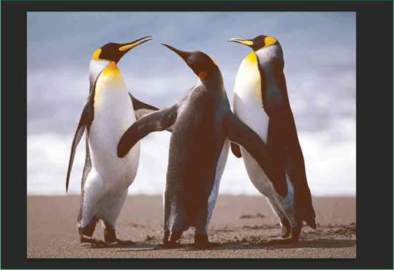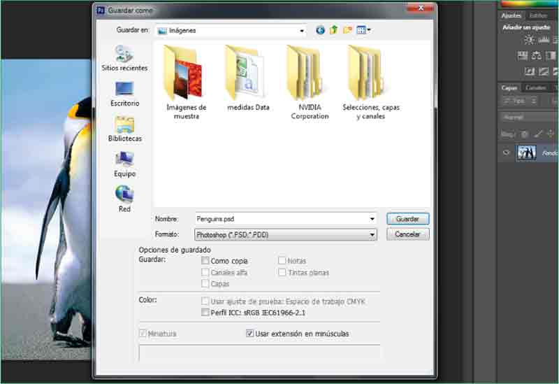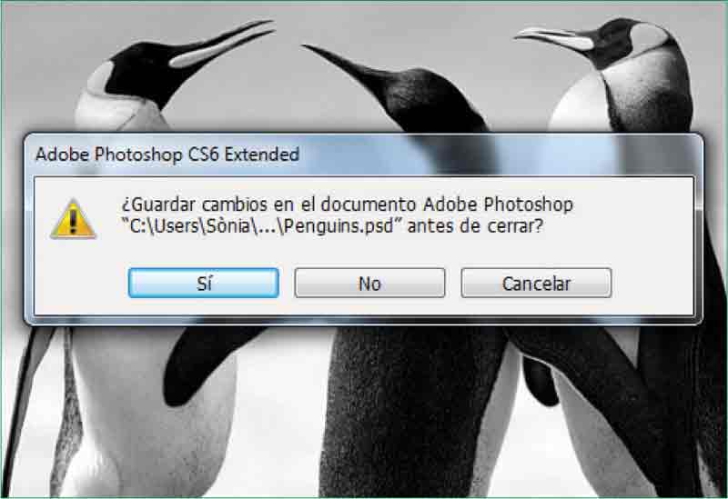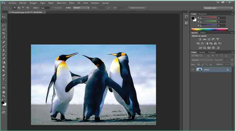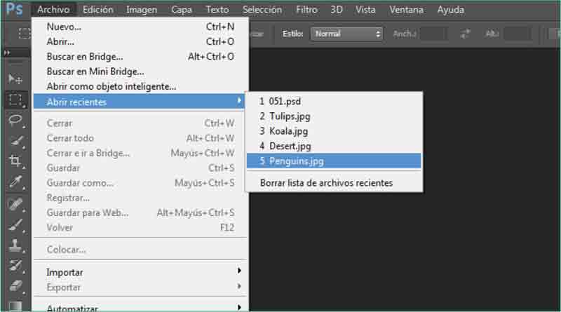 2 Como vimos en la lección anterior, este comando esconde una lista de los últimos archivos abiertos en Photoshop. En este caso, haga clic sobre el archivo denominado Penguins.jpg. (1)