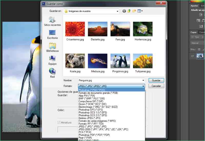 4 Automáticamente aparece el cuadro de diálogo Guardar como. Puesto que tan sólo modificaremos el formato de la imagen, mantendremos el mismo nombre pero cambiaremos el tipo de archivo. Despliegue el campo Formato.