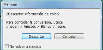 13 Puesto que la opción seleccionada eliminará los colores de la imagen, el programa solicita confirmación para continuar con el proceso. Pulse el botón Descartar. (12)