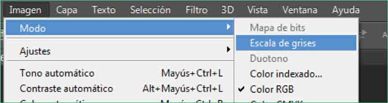12 Despliegue de nuevo el menú Imagen, haga clic en el comando Modo y seleccione el modo de color Escala de grises. (11)
