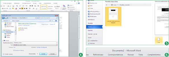 7 Al igual que los documentos se guardan por defecto en la carpeta Mis documentos, Word ubica las plantillas en una carpeta predeterminada denominada Plantillas, pero el usuario puede cambiar su ubicación tal como haría con cualquier otro archivo. Seleccione la biblioteca Documentos en el panel de exploración y pulse el botón Guardar. (4)