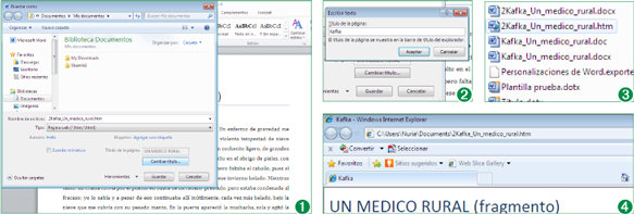 6 Una vez se ha abierto la ventana del explorador, acceda a la librería Documentos de su equipo en la que se ha almacenado el nuevo archivo, que se distingue de los otros por su extensión y por el icono, que en su caso incluye un pequeño globo terráqueo que hace referencia a la red. (3) Haga doble clic sobre el documento para que se abra en su navegador predeterminado.
