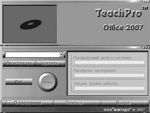 Для начала создайте свою учетную запись, чтобы следить за процессом обучения (объемом пройденного материала, временем, затраченным на работу с каждым разделом). Для этого нажмите кнопку Регистрация и введите в появившейся для набора строке свое имя или фамилию с клавиатуры.