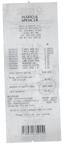 Это чек из магазина «Маркс и Спенсер», куда я ходил за три дня до того, как родился мой сын Ласло, в 2011 году. У Руби, матери Ласло, была непростая беременность, отчасти из-за неодолимой тяги к пиву, которого она не могла себе позволить и поэтому требовала, чтобы я пил его вместо нее. Иногда тяга усиливалась настолько, что, как видно по чеку из магазина «Маркс и Спенсер», мне приходилось выпивать по три бутылки пива за вечер. При этом Руби следила за каждым моим глотком с вожделением, но чаще с укоризной в глазах.