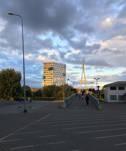 Первым делом я отправился в небольшой парк, находящийся напротив моего общежития (чтобы туда попасть, нужно было перейти через дорогу по светофору). В парке я сначала погулял по газонам, на которых росли кусты и деревья, а потом вышел к речке и, повернув налево, стал двигаться вдоль ее русла по грунтовой дороге в сторону центра. Вскоре я оказался возле моста, и перебрался по нему на другой берег. Перед моим глазами тут же возник потрясающий вид на главную площадь города – я пошагал в ее направлении. Оказавшись на брусчатке, я прошел прямо метров 150, а затем повернул направо, на улицу Рюйтли, и зашел в первое попавшееся мне кафе. Там я заказал апельсиновый сок и пасту с морепродуктами, и в скором времени полностью утолил чувство голода.