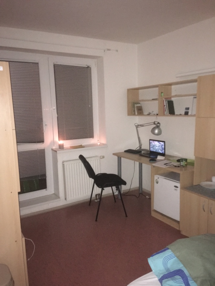В-третьих, на сайте общежития я забронировал одноместную комнату с балконом и маленьким холодильником, которая стоила довольно недорого – 140 евро за месяц; жить в комнате одному было для меня крайне важно.