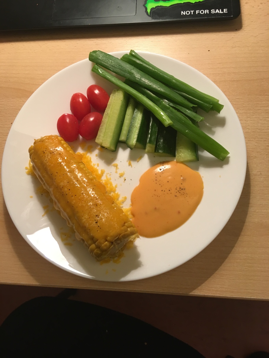 После канцелярского магазина я зашел в супермаркет, где обзавелся продуктами: початком кукурузы, томатами и сыром чеддер – из этого всего вечером я приготовил простенький ужин.