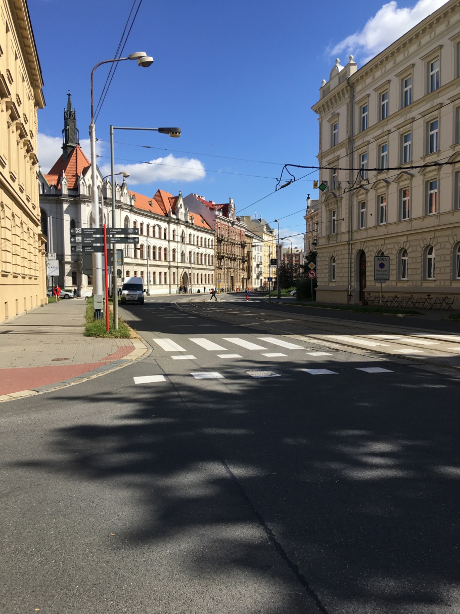 Пока мы ехали до общежития (это, как оказалось, была конечная трамвайная остановка – Нередин), я безостановочно смотрел в окно, изучая новое для меня пространство: архитектурное великолепие Оломоуца до глубины души поразило меня. Вскоре мы остановились на парковке рядом с пятиэтажным домом с небольшой круглой пристройкой. Женщина-водитель улыбнулась и показала на счетчик. Поездка от железнодорожного вокзала до общежития заняла у нас минут 15, не больше, и стоила мне 97 крон – что было очень недорого.