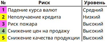2) Оценить ключевые финансовые риски (например, риск падения курса валют будет стоить компании 1500 тыс. руб. в год, риск неполучения кредита под операционную деятельность – 3 000 тыс. руб. в год и т. д.)