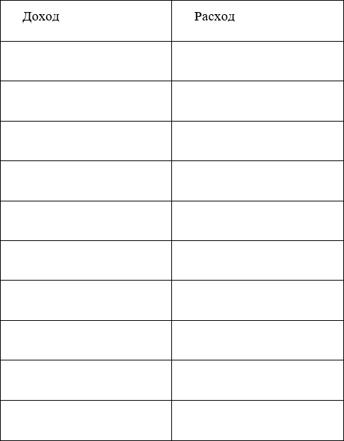 Делим страницу на две части, в одной из которых пишем основные статьи дохода, в другой – статьи расхода.