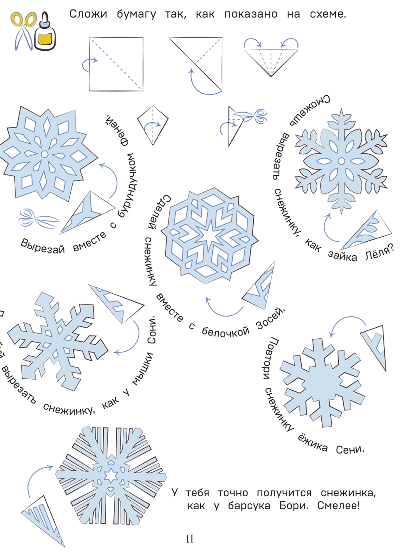 – А вот так, – улыбнулась Лёля, – мы сделаем свои снежинки, самые разные, самые красивые! И украсим ими поляну.