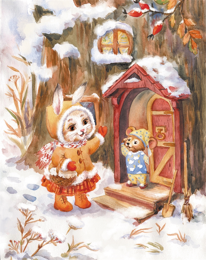 – Соня, открывай, ты что же до сих пор спишь? Новый год на носу, – зайка заколотила дверным молоточком.
