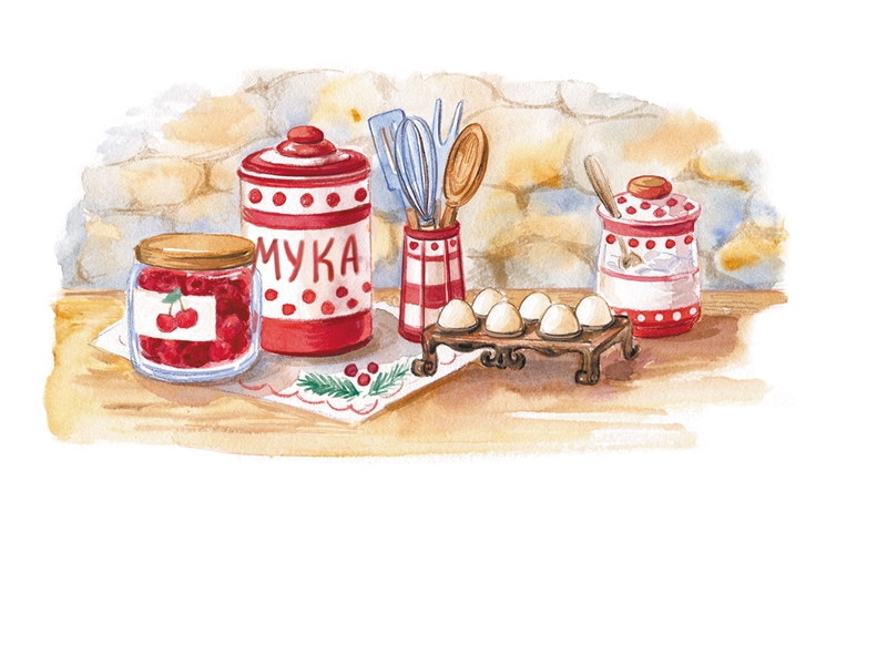 Они сверялись с рецептом и заранее подготавливали всё необходимое: муку, яйца, сахар, замороженную вишню. А потом отправились к друзьям за их запасами, чтобы перед Новым годом приготовить традиционный пирог дружбы.