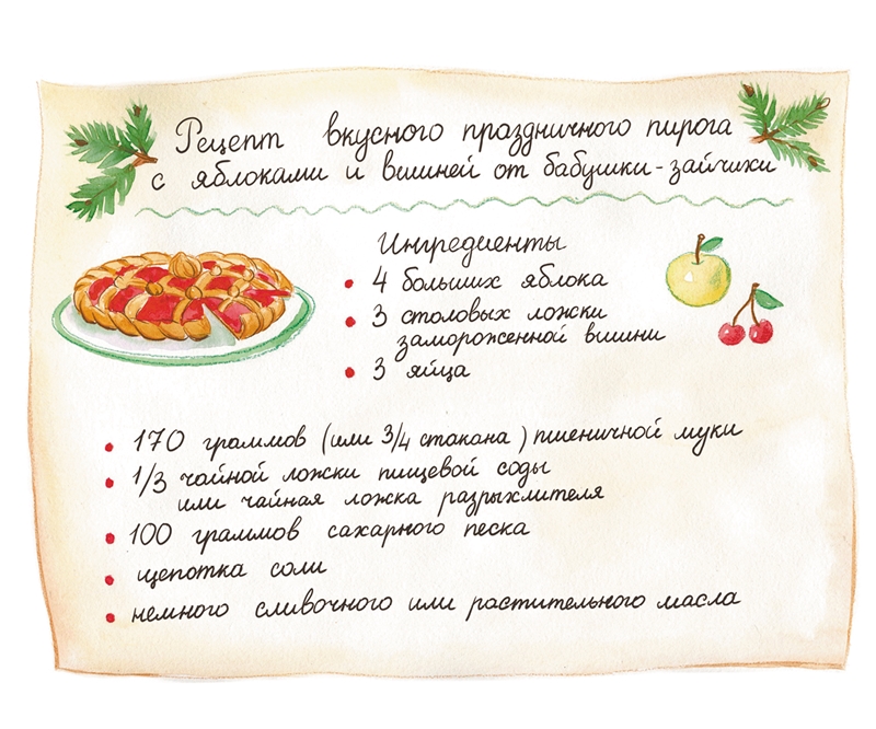 – Вот он, мой любимый рецепт от бабушки. Подготовим всё необходимое и накануне Нового года испечём наш любимый пирог.