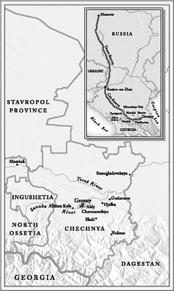 WE WERE, AT LONG LAST, on the outskirts of Aldy, an ancient village of overgrown fruit trees and low-slung tin roofs on the southern edge of Grozny, the Chechen capital, and Issa was singing, “Moi gorod Groooozny, ya po tebe skuchaaayu … no ya k tebe vernuuus, moi gorod Grozny moi.”