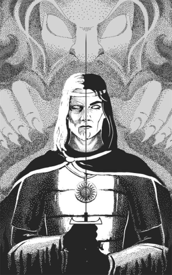 Торговый караван с южных земель много дней шёл по дороге, ведущей через дремучий лес, когда лошади остановились недалеко от святого места. Один из пилигримов, стражник в доспехах, в поисках места для лагеря забрёл в древнее капище. Он почтил Богов, помолился Матери-Земле. Когда святое место покинуть собрался, увидел деревянную чашу, которая стояла подле кострища. Сосуд украшали руны, значения которых воин не знал. Он поднял чашу, и легкий туман стёк с серебристой глади воды. Почудилось путнику, будто бездонная пропасть сокрыта в глубине сосуда, и глядит на него Нечто из толщи воды. Испугался человек, но взора отвести не мог. Как заворожённый смотрел на воду, долго смотрел, пока не одолела его жажда великая. Спасение лишь во тьме сосуда воин видел. Испил воин воды студёной, и небывалое видение предстало перед ним. Будто мир огнём охвачен. Бушует зверь – трёхглавый морской змей. Солнцеград разрушен… А на троне – человек, кто свою душу заключил во тьму.