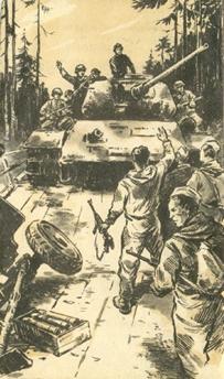 Его не понимали, но танкисты заглушили моторы и наконец разобрались, что к чему. Командир передового отряда танкистов поблагодарил разведчиков за помощь, обещал доложить об их подвиге, но, заметив пять автомашин, хищно подобрался.