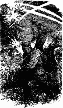 Бурьян скрывал это выдвижение, и потому опять было вернулось чувство обреченности на неуспех, но его смяли серии непосредственных впечатлений, сиюсекундных мыслей. Противник мерещился со всех сторон, но появился неожиданно. Прямо на лежавших правее, ближе к оси неприятельского выдвижения, Су-тоцкого и Шарафутдинова вышло не менее десятка солдат.