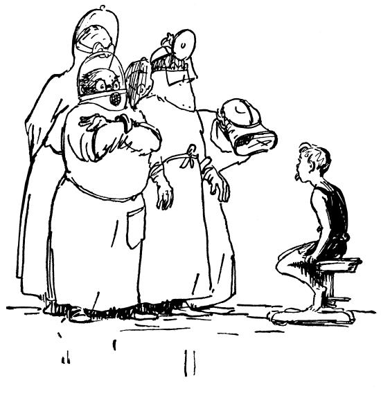 Но вся беда в том, что Вася был не в той привычной далёкой обстановке, а в этой новой и ещё не совсем разгаданной. Кроме того, рядом сидела сочувствующая Лена и ехидно-торжествующий Женька. В этих условиях нужно было сразу же показать всем, что ты настоящий мужчина, что ты не боишься ничего на свете. Даже зубного врача.