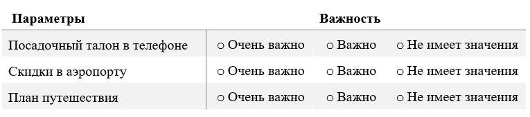 Респондентов нужно попросить оценить важность параметров, например, по шкале от 1 до 3, где 1 – очень важная выгода, а 3 – абсолютно не важная. Благодаря тому, что процесс оценки для респондентов очень простой, то можно тестировать от десяти до тридцати параметров в зависимости от сложности их описания.