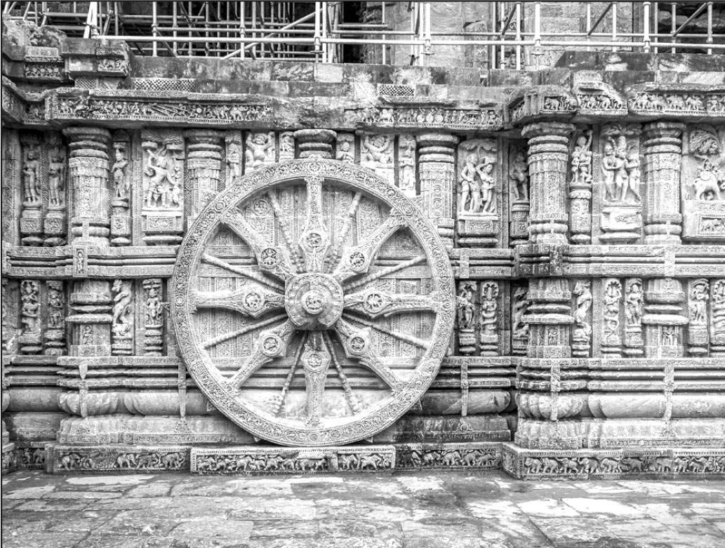Колесница, вырезанная в стене храма солнца в Конарке, Индия