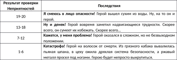 Неприятности всегда должны оставлять герою хотя бы мизерный шанс спастись и не должны убивать его сразу. Мастер может менять градации, да и вообще не обязан их делать – если он желает ввести Неприятность в игру, она случится и без какого-то там броска.