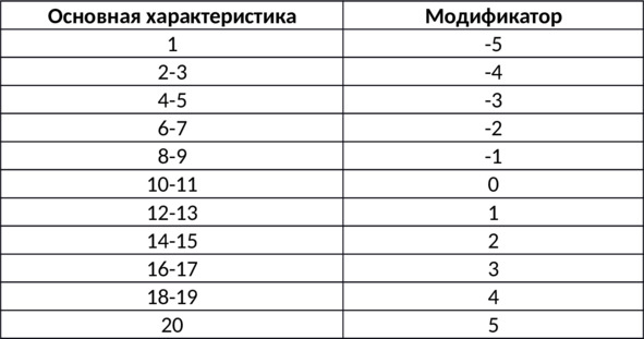Модификаторы Характеристик: в большинстве формул используется не полное значение Характеристик, а так называемый модификатор. Модификатор = (Основная характеристика – 10) ÷ 2.
