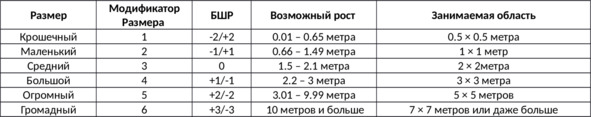 В зависимости от своего размера существо получает бонус или штраф к Скорости после определения ее значения. Мелкие существа вычитают БШР из Ск, крупные – прибавляют БШР к Ск. Например, Крошечная Фея понизит свою Скорость на 2, а Большой огр – повысит на 1.