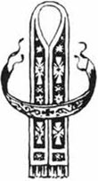 Вышитая или цветная лента употребляется в каждой из трех степеней священства. Диакон носит ее, как носили в древнем Риме, – через плечо, тогда она называется орарем[15]. У священника она спускается обоими концами на грудь и скрепляется. В такой форме ее называют епитрахилью[16]. И, наконец, у епископа она лежит на плечах, одним концом спускаясь на грудь, другим – на спину. Этот знак епископского сана называется омофором[17]. И орарь, и епитрахиль, и омофор имеют на себе изображения крестов.